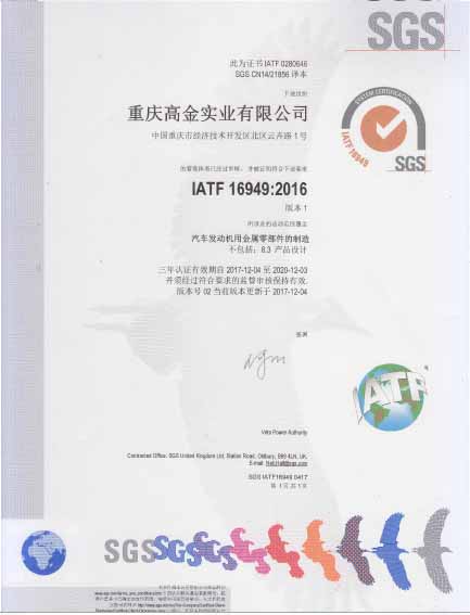 公司于2017年12月7日獲得ISO9001:2015和IATF16949:2016體系認(rèn)證證書。